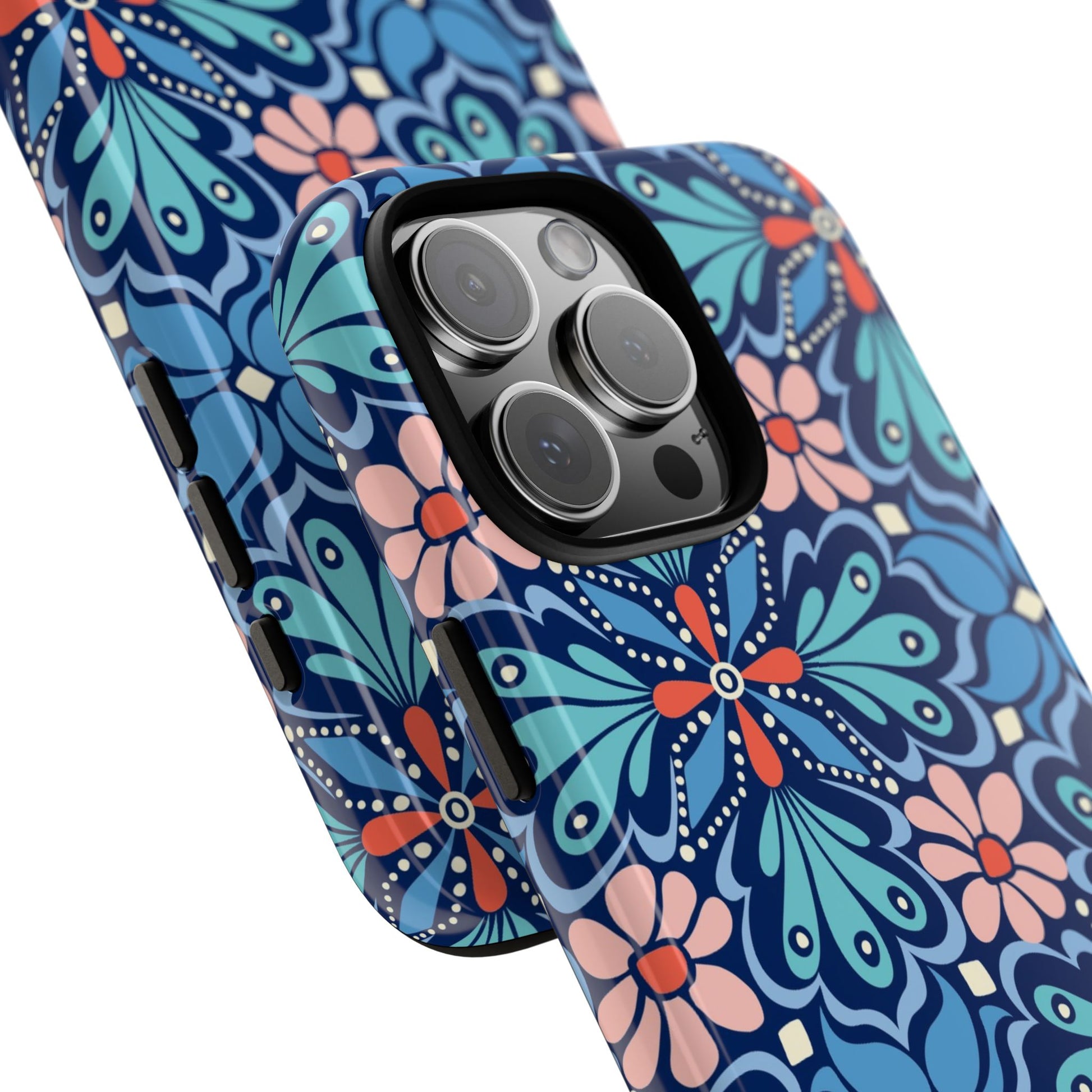 Luxurious and eye-catching phone case that combines intricate geometric patterns with durability. Show off your style while keeping your iPhone safe.