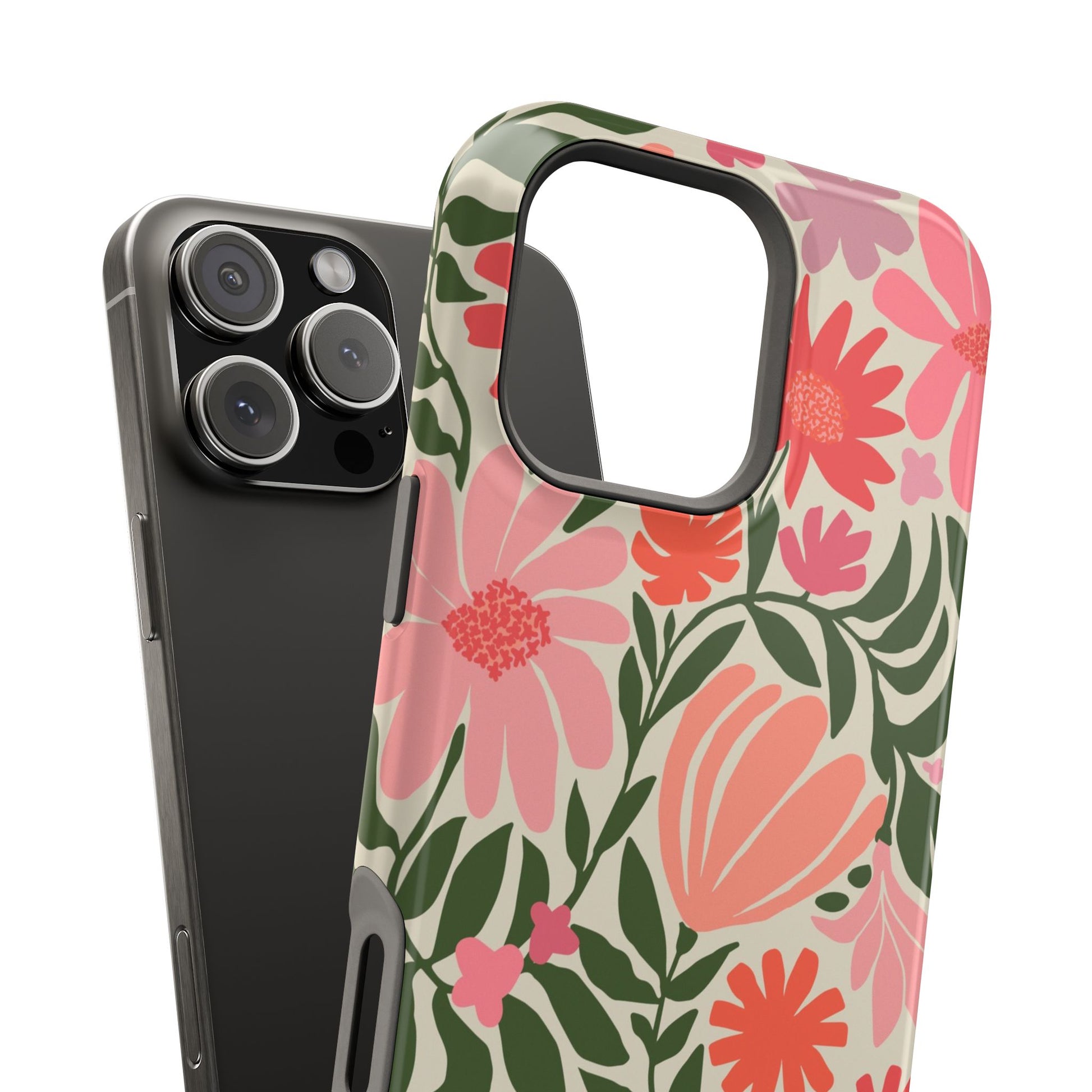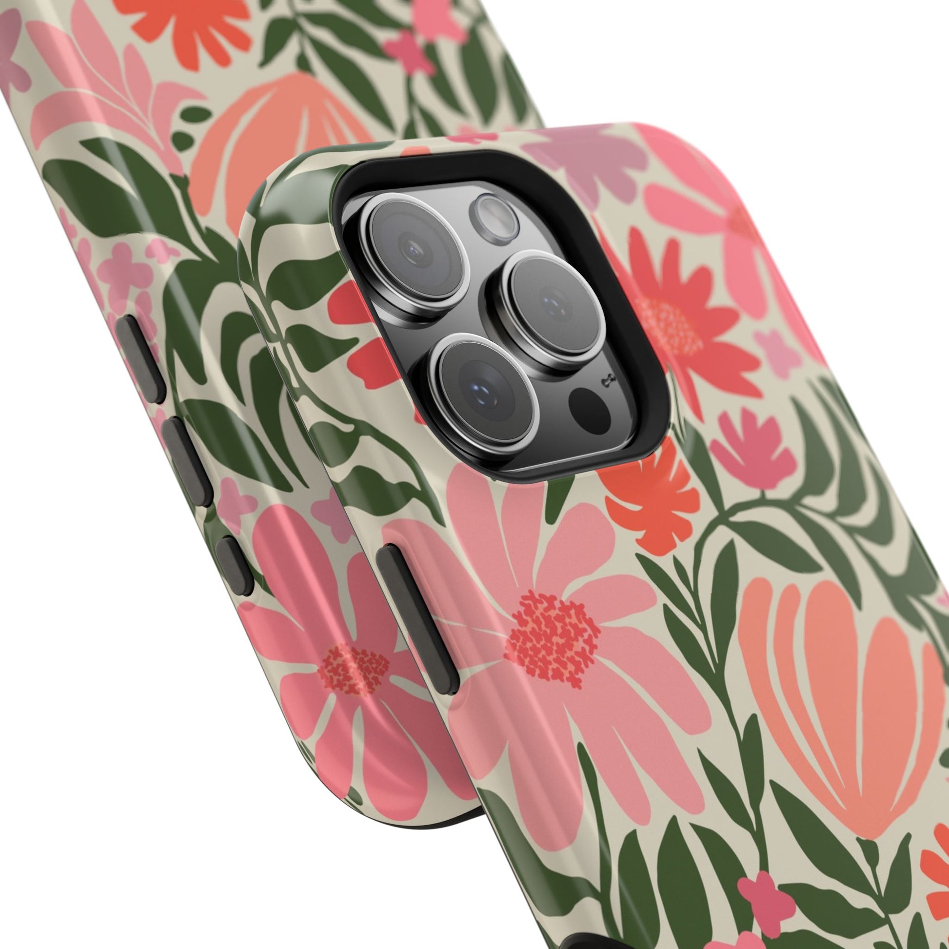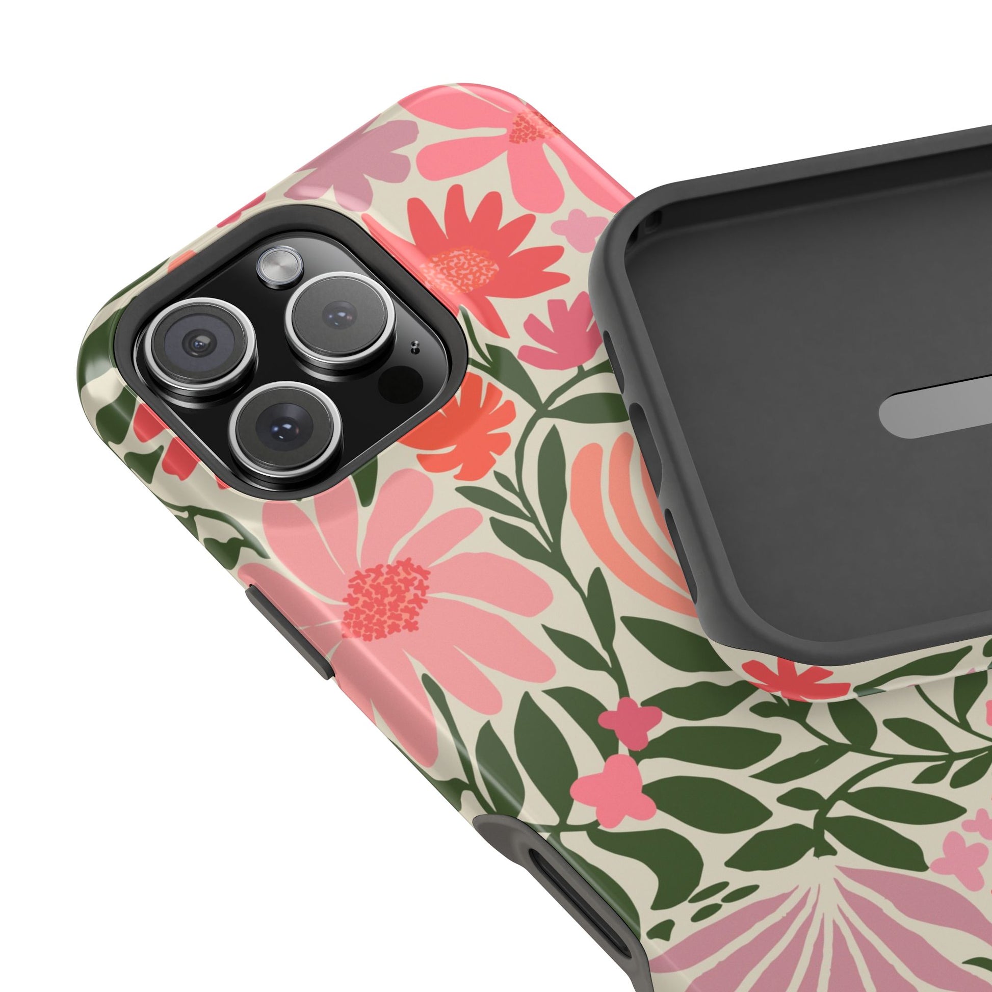 The Botanica iPhone Magsafe case elegantly combines contemporary design with refined tropical floral patterns, offering a modern yet timeless aesthetic.