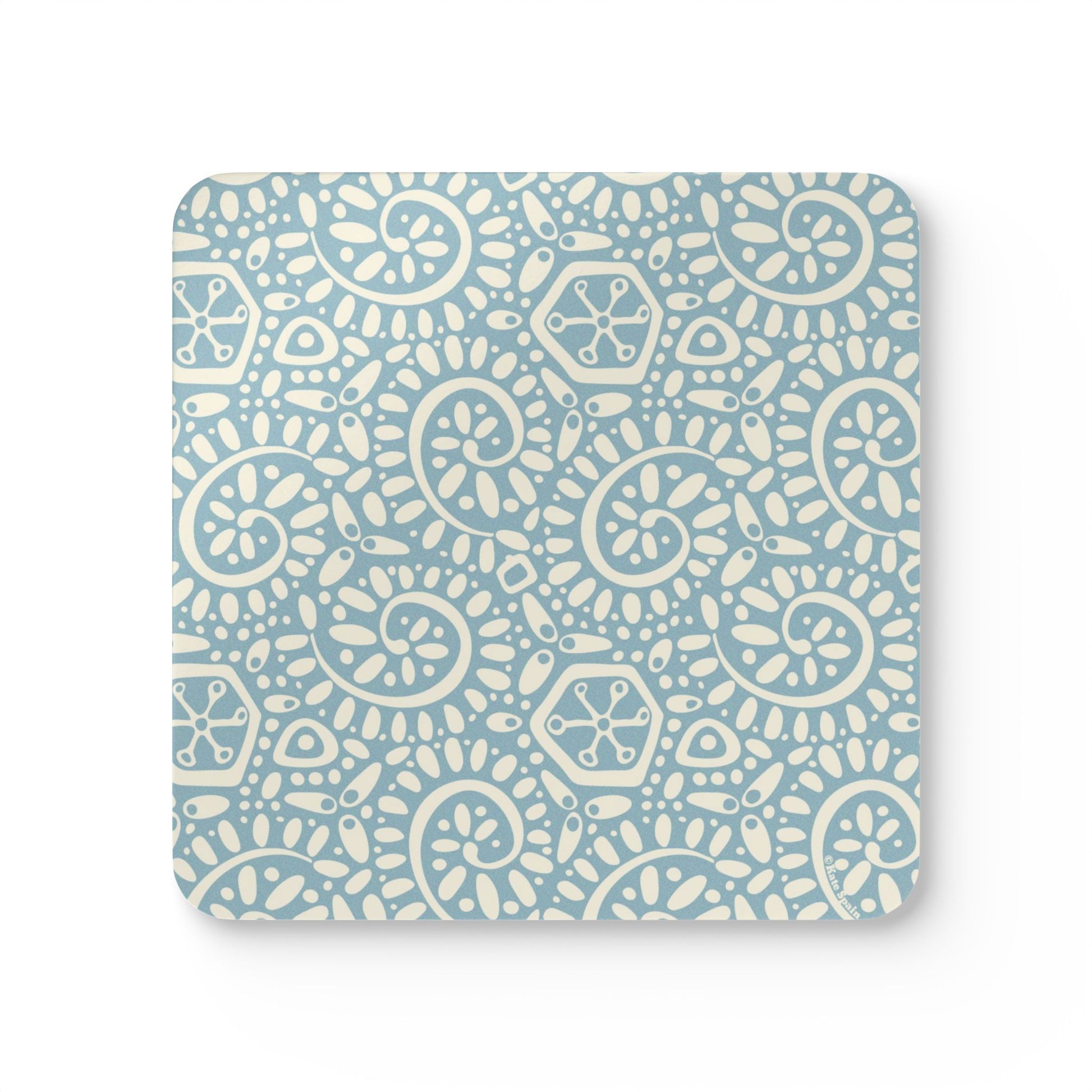 Great for housewarmings, weddings, and holidays, this cork coaster set makes a thoughtful gift for friends and family who love to entertain, appreciate geometric designs, or enjoy unique home accessories. Cork backing protects furniture while the sky-blue pattern adds peaceful elegance.