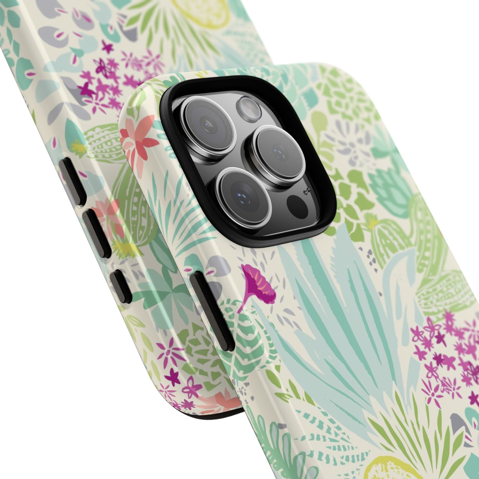 Protect your iPhone in style with this tough case, featuring a colorful design inspired by the desert's rugged beauty and unique succulents, cacti and flora.