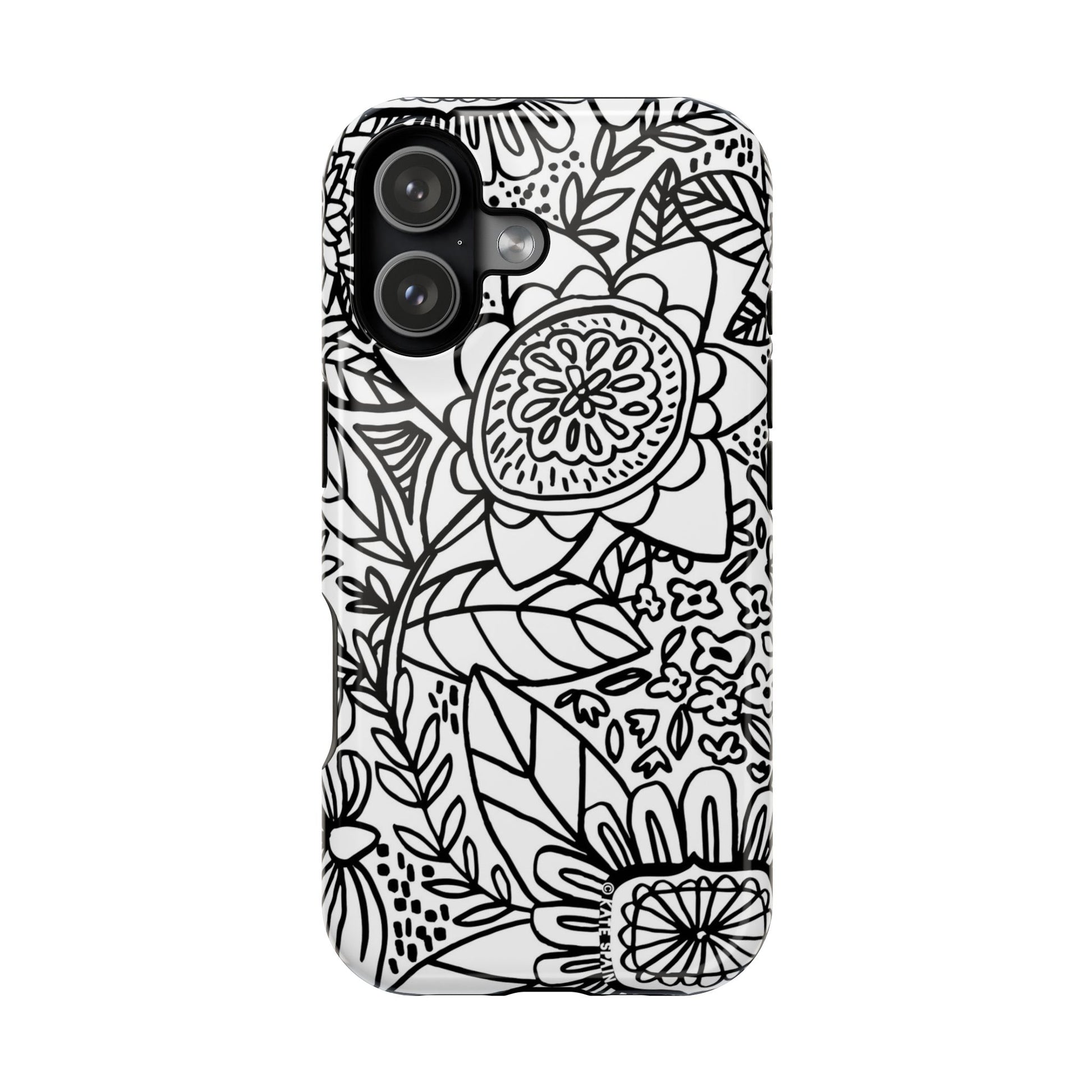 The Esprit iPhone MagSafe Tough Case features minimalist hand-drawn flower doodles in classic black and white. This modern, artistic case brings sophisticated simplicity to your everyday carry. Perfect for minimalists, artists, and anyone who appreciates clean, elegant design.