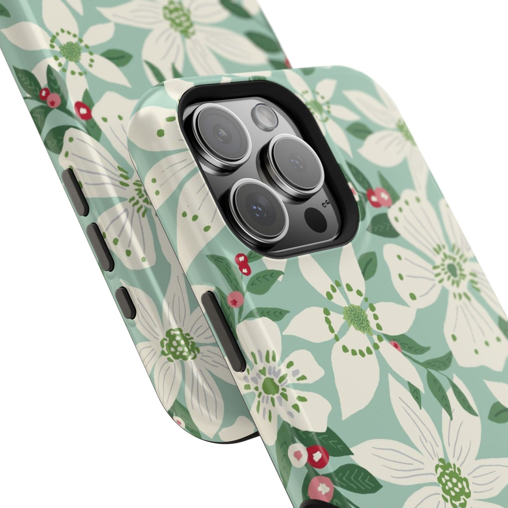 The luxurious Gardenia iPhone MagSafe Tough Case is covered with a delicate bouquet of sophisticated flowers in soft hues. This elegant floral design brings refined beauty to your everyday carry while providing premium protection. Perfect for those who appreciate timeless, feminine style and sophisticated botanical artistry.