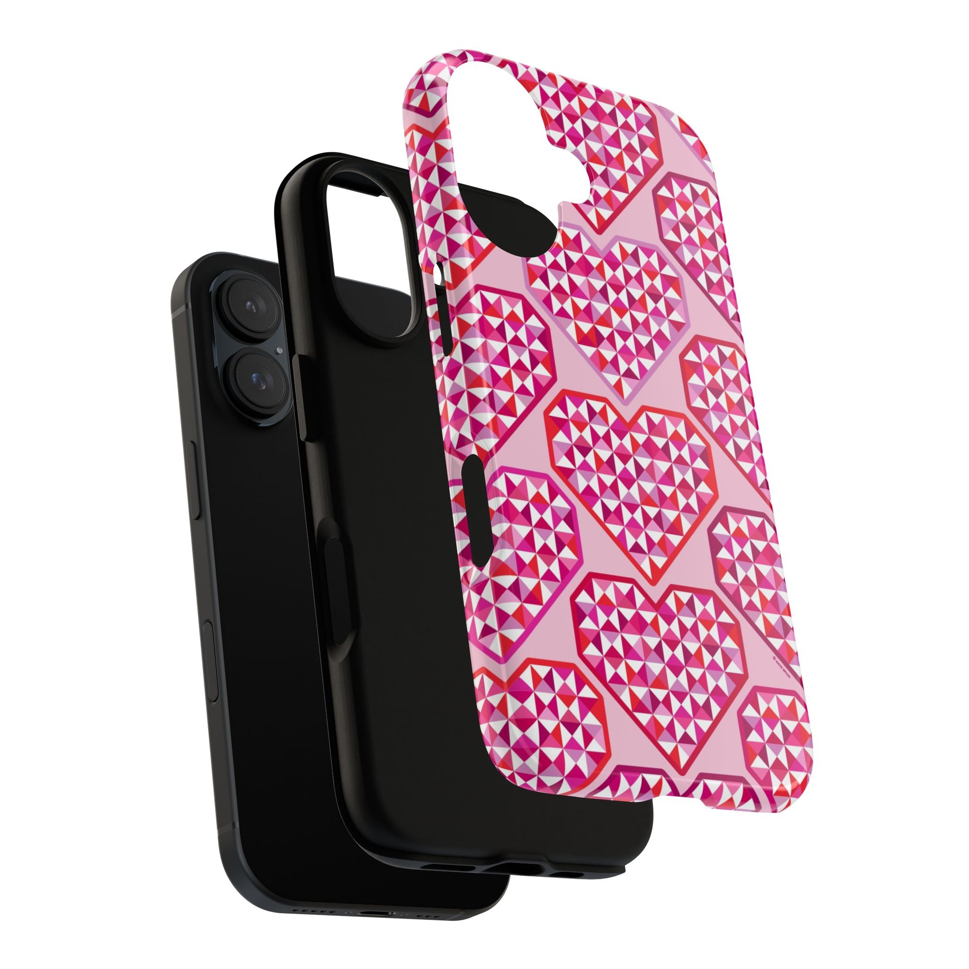 This Pink Pyramid Heart Tough Phone Case combines eye-catching geometric design with serious protection for your iPhone. The repeating pyramid heart pattern in shades of pink creates a bold, modern look that stands out.