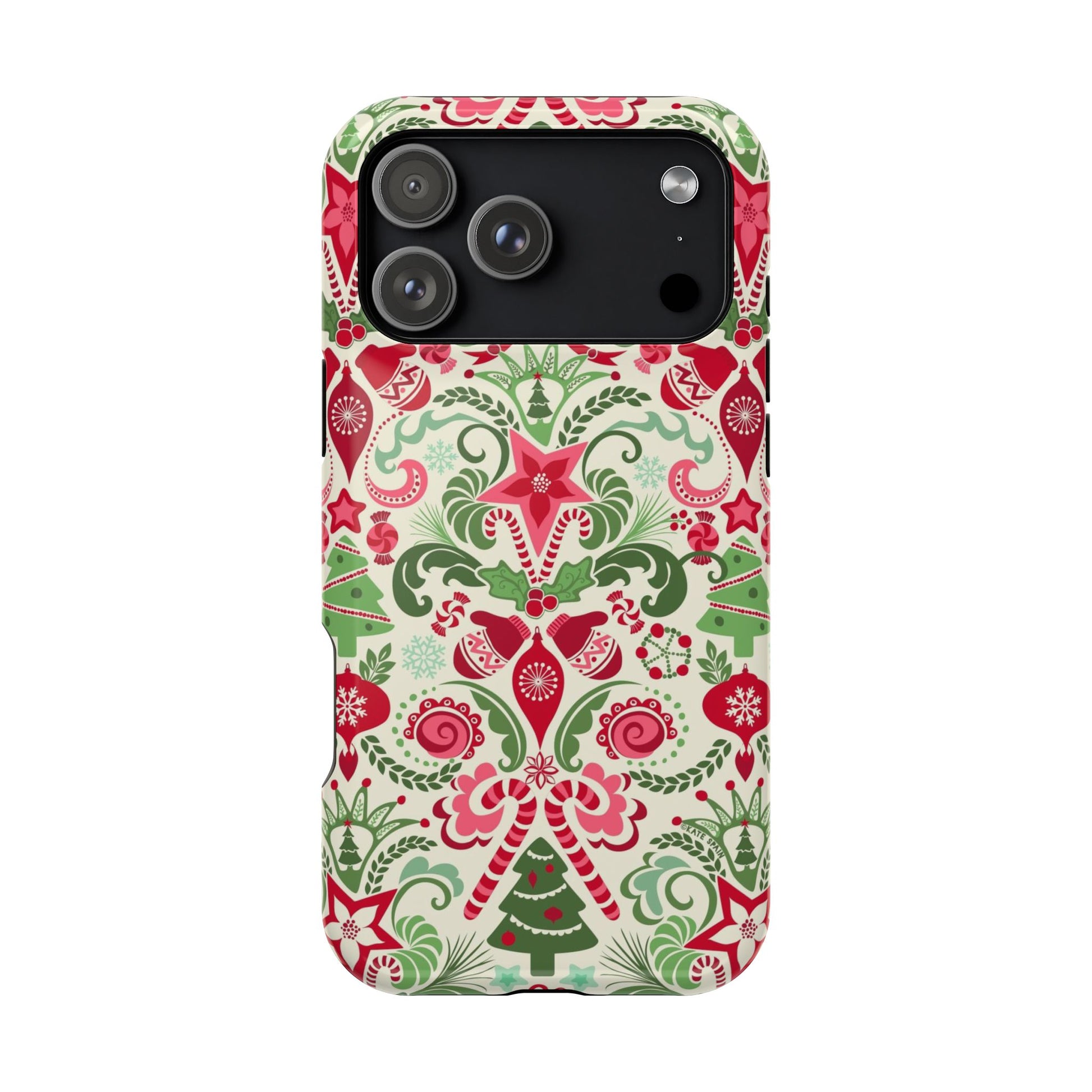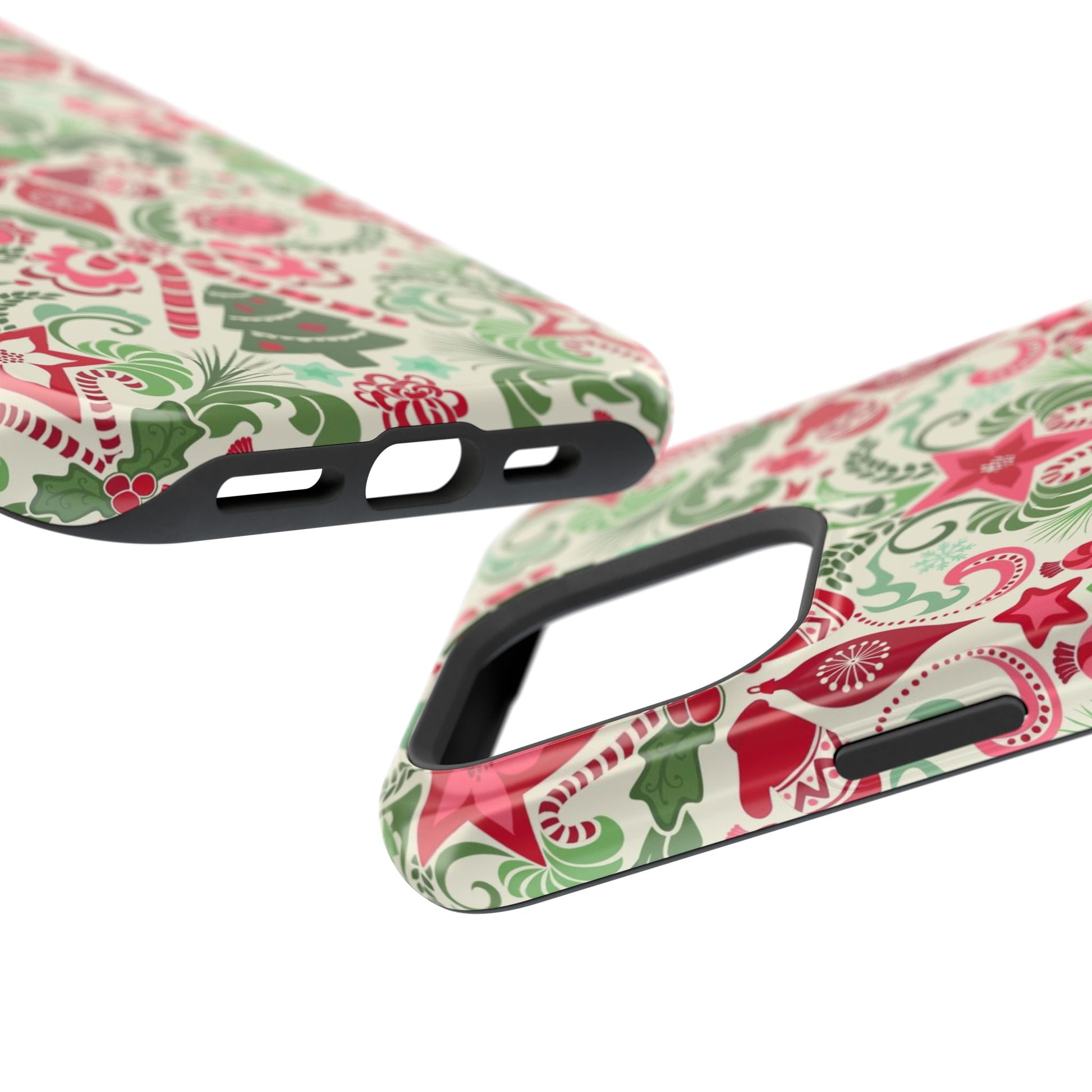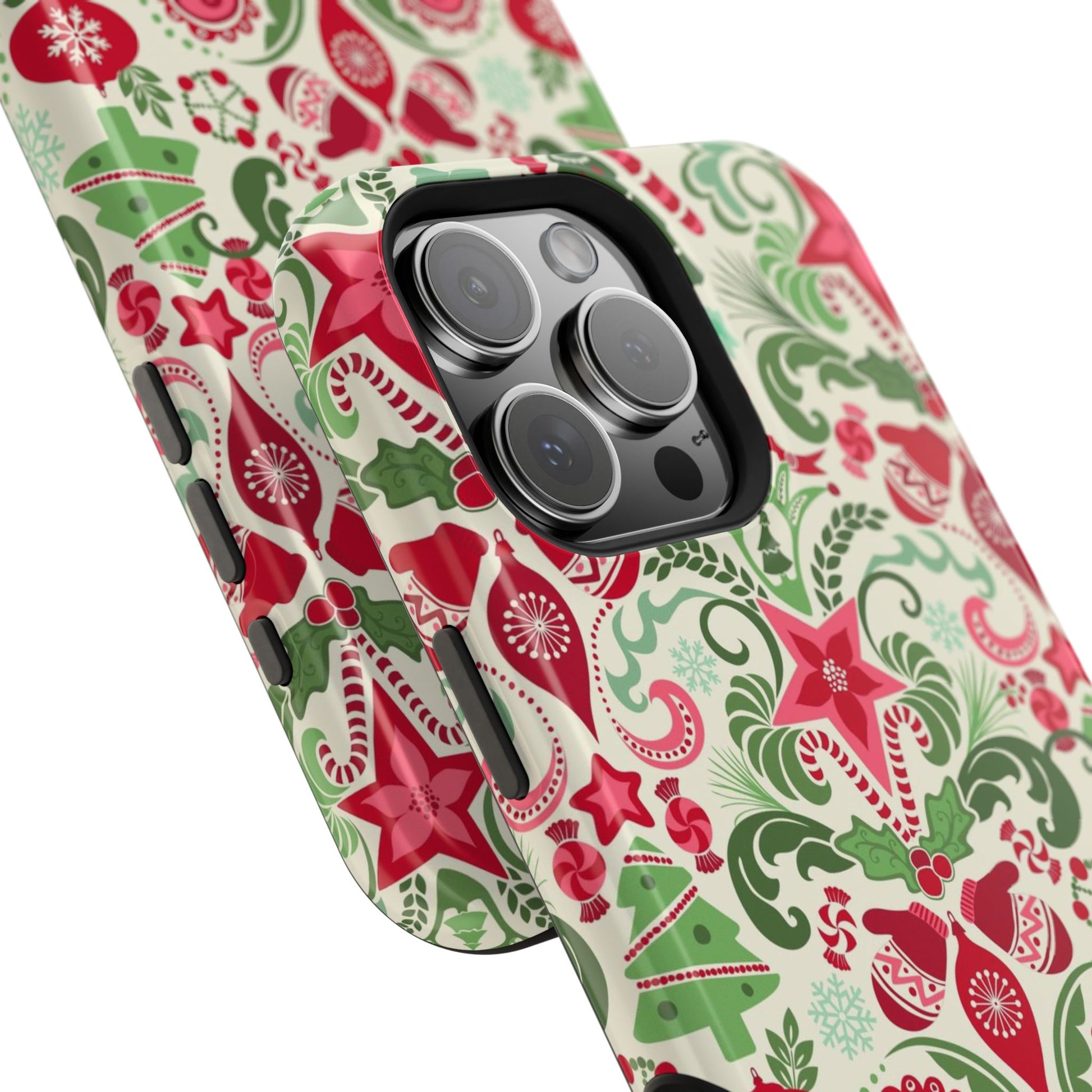 'Tis the season for a festive winter wonderland in this Christmas-themed iPhone Tough Case. Trees, stars, ornaments mittens and more! MagSafe charging.